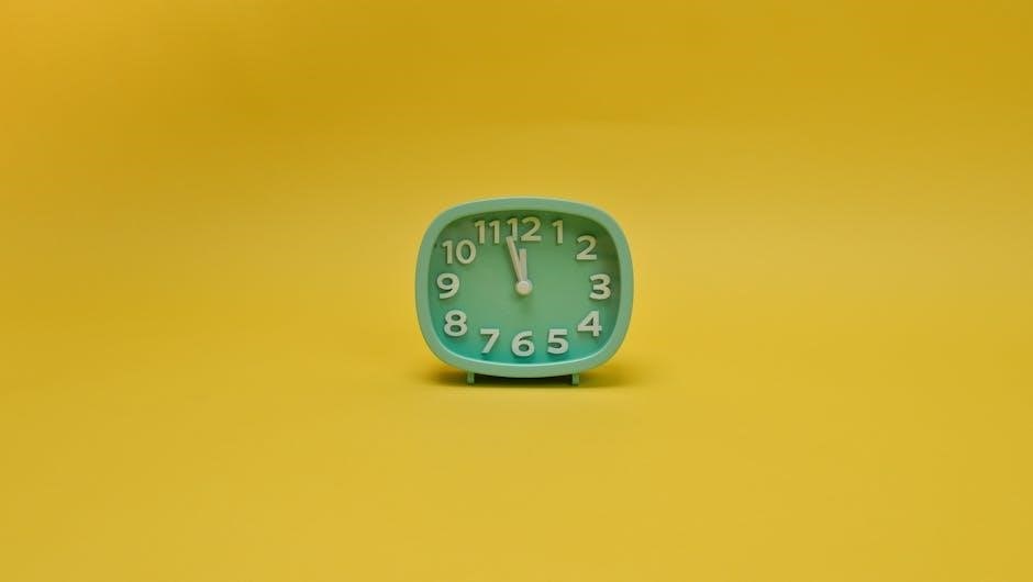 The manual is essential for maximizing the functionality of your Smiggle Rainbow Alarm Clock. It provides detailed instructions on setting the time, configuring alarms, and using the snooze feature. Additionally, the manual explains how to utilize the voice output and digital calendar features effectively. Troubleshooting common issues, such as resetting the clock or fixing alarm malfunctions, is also covered. By following the guidelines in the manual, users can ensure optimal performance and seamlessly integrate the clock into their daily routines. Downloading the PDF manual allows easy access to these instructions anytime, ensuring you never miss a feature or function.