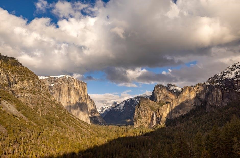 Yosemite’s shuttle system connects numerous key locations, detailed in available PDF maps. Stop 3 provides access to the iconic Ahwahnee Hotel area, perfect for exploring the historic grounds and nearby meadows. Stop 6 is ideal for visiting Lower Yosemite Fall, offering stunning views and photo opportunities.